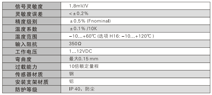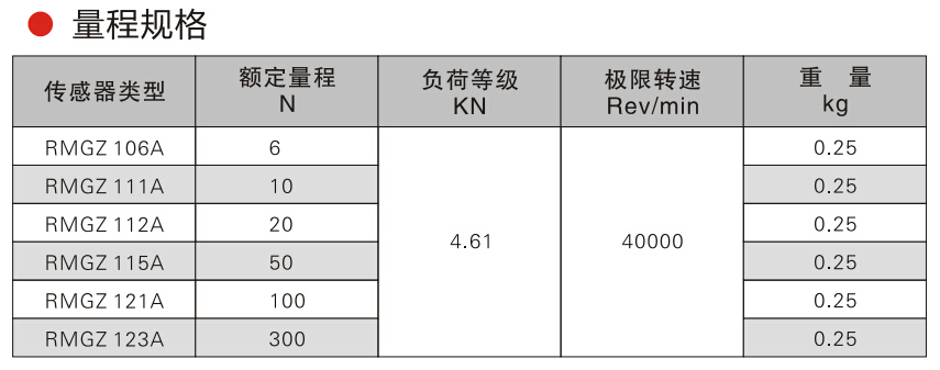 瑞士FMS RMGZ100系列張力傳感器的量程規(guī)格:
