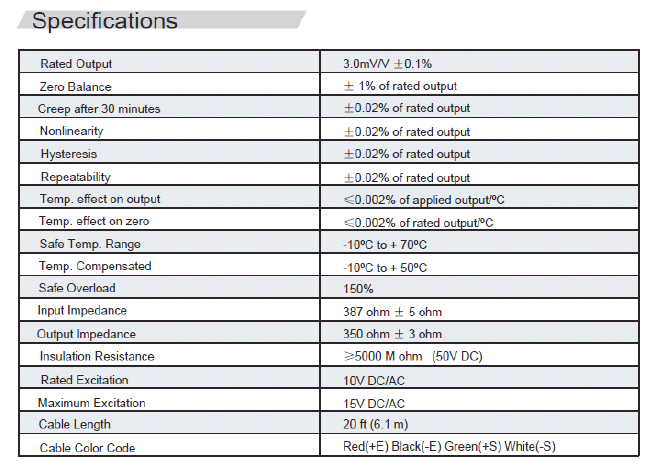 美國Transcell SBSB-SBSB-2000kg稱重傳感器技術參數(shù)圖: