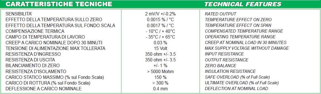 意大利Laumas SL-1000KG傳感器參數(shù)詳情: