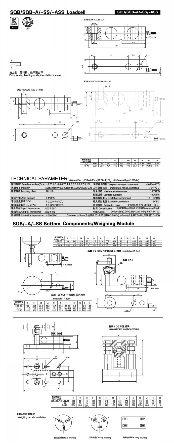想了解更多SQB系列傳感器可以點擊:amcells稱重傳感器;可查找SQB-250KG傳感器系列型號了解具體技術參數(shù)及相關系列產(chǎn)品型號等信息。