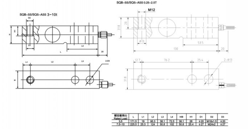 SQB-3T傳感器介紹:美國(MKcells)稱重傳感器SQB-3T是一種懸臂梁式稱重傳感器,懸臂梁結(jié)構(gòu)由于支點負(fù)彎矩的卸載作用,跨中彎矩大大減?。挥捎趶澗貓D面積減小,跨越能力增大;靜定結(jié)構(gòu)對地基要求不高; 由于跨中有接縫,支撐條件很好;而且SQB-3T傳感器的合金鋼材料讓它非常的耐用和防腐蝕、防水、防風(fēng)、防被偷等,SQB-3T稱重傳感器適用的場合很多,不過最主要的應(yīng)用還是平臺秤、配料控制系統(tǒng)、低平臺秤。