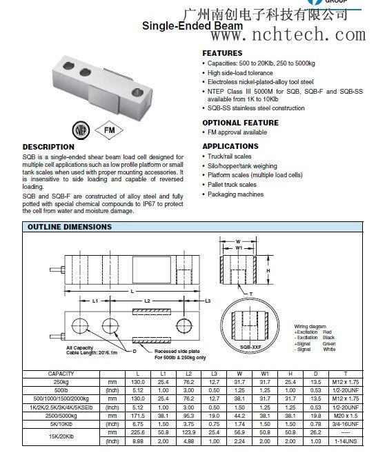 SQB、SQB-F、SQB-SS量程1K到10KLB,獲得NTEP Class III 5000M認(rèn)證