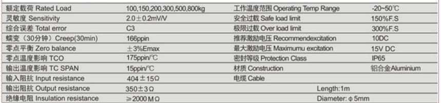 UDA-300KG傳感器技術(shù)指標(biāo):