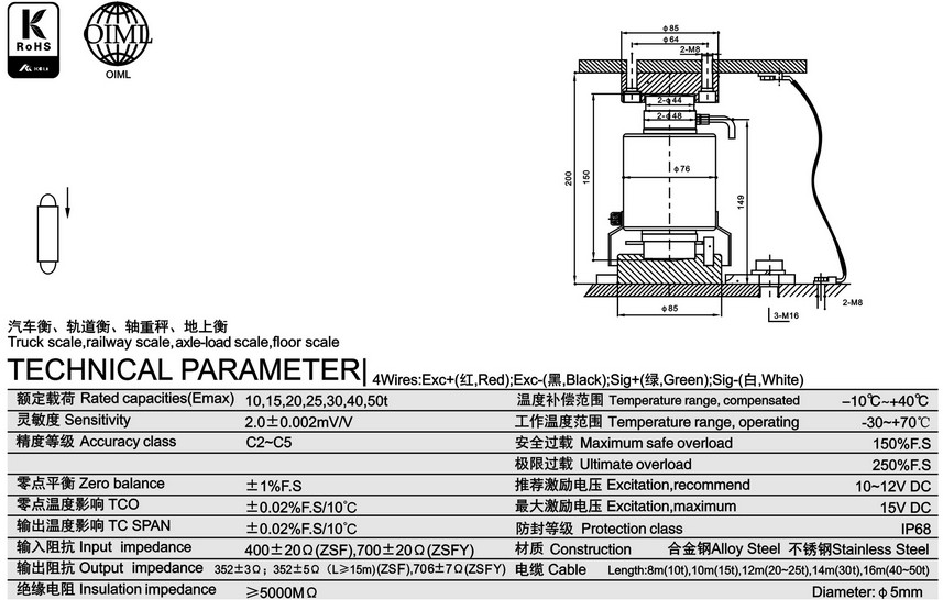 柯力ZSFY-A-10T稱重傳感器功能特點