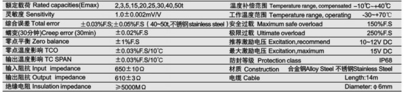 ZSKB-A-5t柱式稱重傳感器參數(shù):