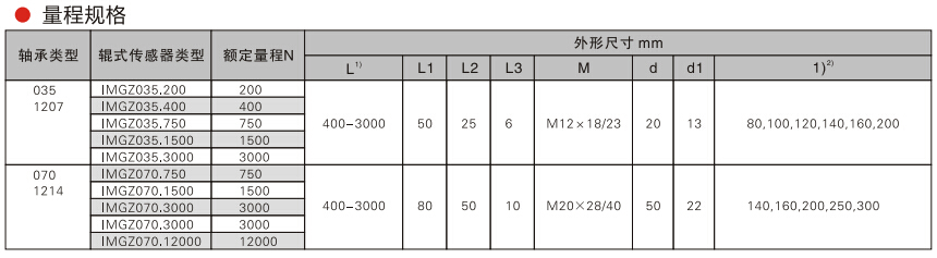 瑞士FMS IMGZ張力傳感器的其他量程規(guī)格: