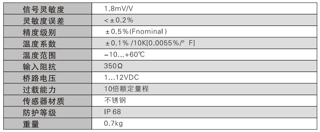 瑞士FMS JG205系列張力傳感器的其他量程規(guī)格: