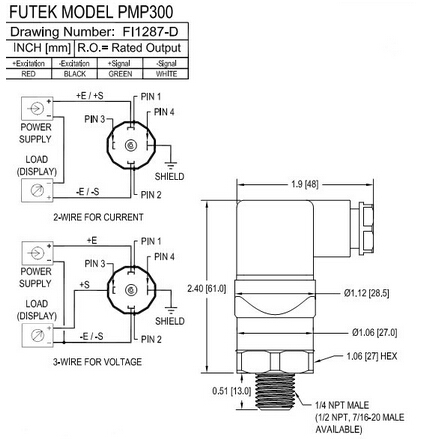 美國(guó)Futek PMP300壓力傳感器尺寸參考圖: