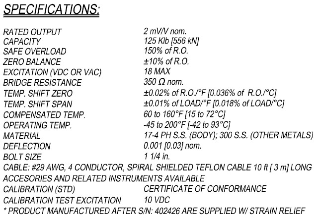 美國FUTEK LLW480稱重傳感器技術參數(shù)圖: