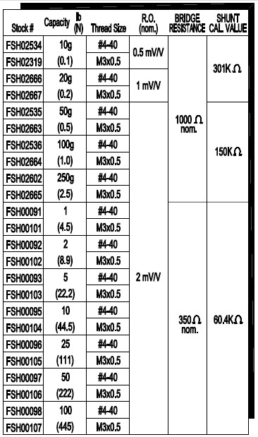 ● 量程 10g, 20g, 50g, 100g, 250g, 4.5, 8.9, 22, 44, 111, 222, 444 N