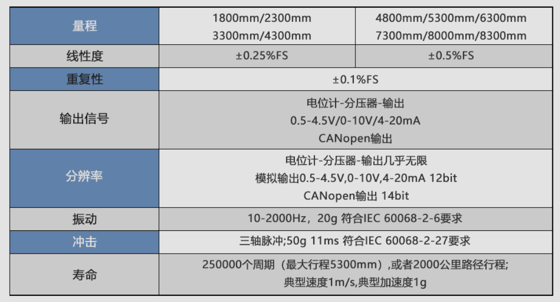TM1廣州南創(chuàng)電子科技有限公司杰佛倫拉繩式位移傳感器GSFSMS1800LA0 GSFSMS3300LA0相關(guān)特點(diǎn): TM1廣州南創(chuàng)電子科技有限公司GSF拉繩位移傳感器采用滑線電位計(jì)技術(shù)的線性傳感器。具備出色的可重復(fù)性、高IP防護(hù)等級、高抗沖擊性和高抗振性以及高電磁兼容性,該傳感器適用于移動液壓應(yīng)用??蔀檗r(nóng)機(jī)設(shè)備、土方工程機(jī)械、起重設(shè)備等應(yīng)用提供穩(wěn)定、高性能的解決方案。