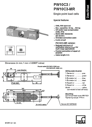 德國HBM PW10C3稱重傳感器系列所有型號: