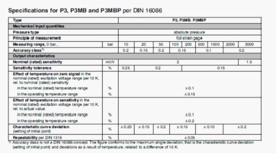 德國(guó)HBM p3mb/200bar壓力傳感器關(guān)鍵性能: