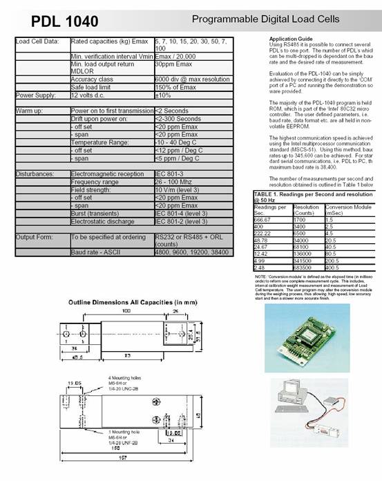 美國(guó)Tedea-Huntleigh 1040-20kg稱重傳感器技術(shù)參數(shù)圖: