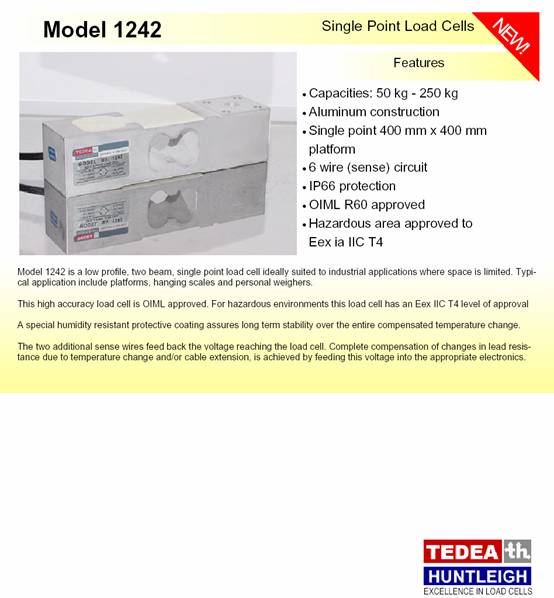 Tedea-huntleigh 1242單點(diǎn)式稱重傳感器所有型號(hào):1242-50kg 1242-100kg 1242-150kg 1242-200kg 1242-250kg