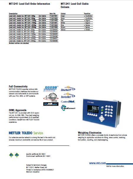 產(chǎn)品名稱:瑞士梅特勒托利多MT1241-30kg稱重傳感器