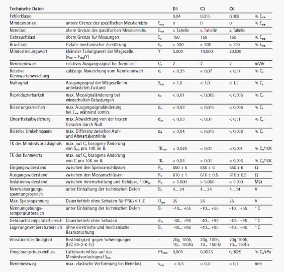 德國sartorius PR6241/22C3稱重傳感器技術(shù)參數(shù):