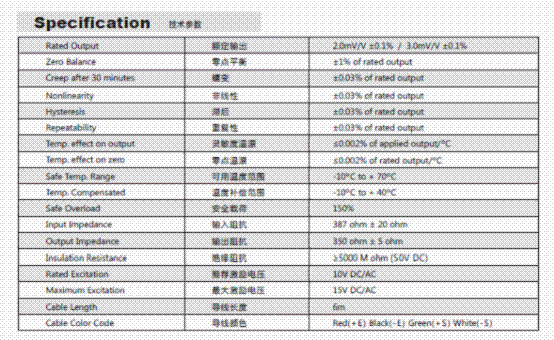美國Transcell BSA-50kg稱重傳感器技術(shù)參數(shù)圖: