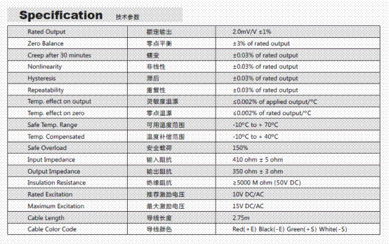 美國(guó)Transcell BAB-5MT稱重傳感器技術(shù)參數(shù)圖: