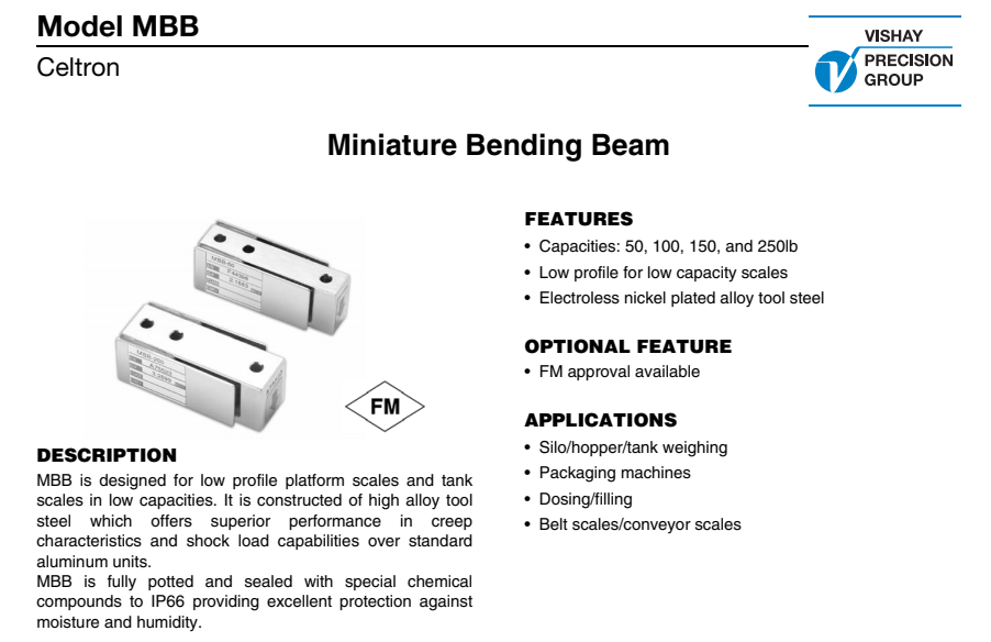 美國(guó)威世世銓傳感器Celtron MBB系列雙剪切梁產(chǎn)品描述: