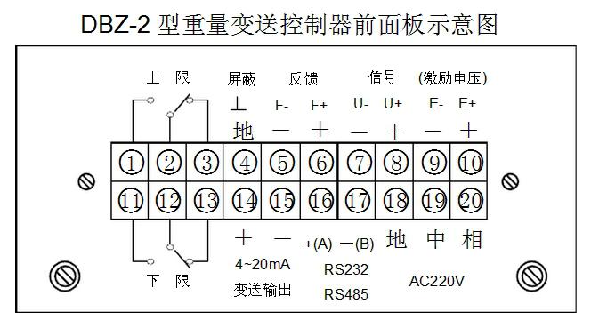 DBZ-2型稱重變送控制器后面板布置及接線圖 t3E廣州南創(chuàng)電子科技有限公司
