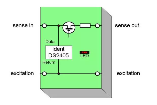 在測量橋路上連接 TEDS 模塊是另外一種方法,無需更換電纜。零線技術(shù)的基本功能: 電壓脈沖打開開關(guān),數(shù)據(jù)從芯片中讀取。當開關(guān)關(guān)閉,芯片通過 反饋/激勵 電纜短路,傳感器進入測量模式。Yi4廣州南創(chuàng)電子科技有限公司