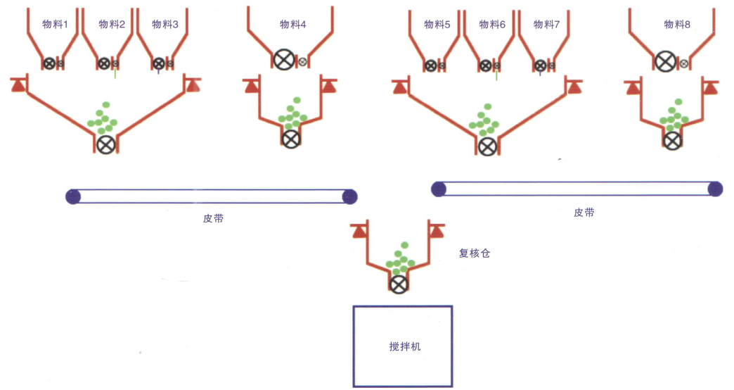 系統(tǒng)特點(diǎn):配料秤斗由一臺(tái)配料控制器完成; 制作成本低,結(jié)構(gòu)緊湊。