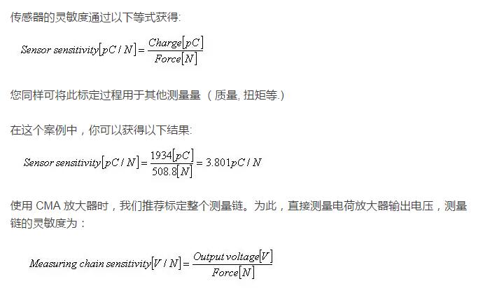 安裝后,需要測量傳感器靈敏度: 當(dāng)力加載到傳感器上,壓電力傳感器將產(chǎn)生電荷。靈敏度可以通過以下等式計算出  (靈敏度 = 電荷/力).