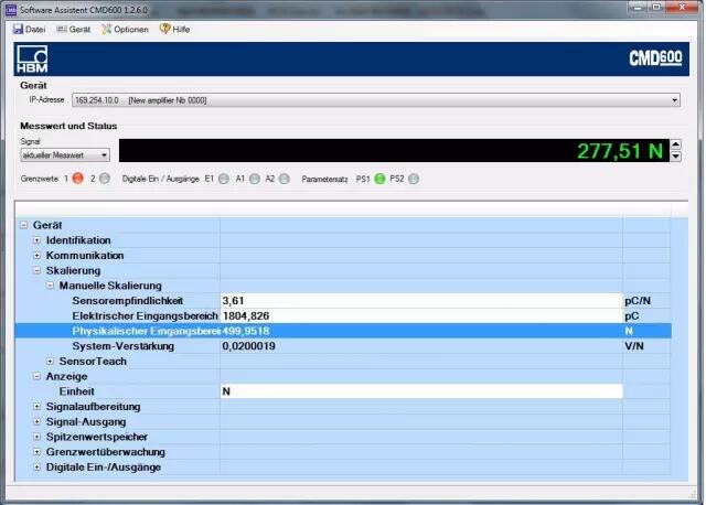 加載到測量設(shè)備上的力(通過標(biāo)準(zhǔn)測量鏈)的值會立即顯示在運(yùn)行 CMD Assistant 軟件的電腦上。