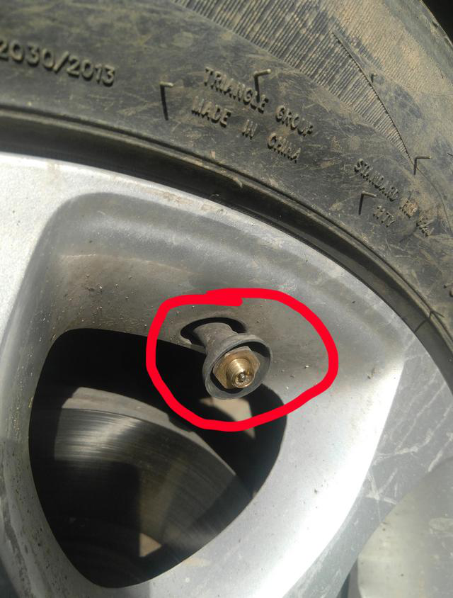 通常原車配備的胎壓監(jiān)控系統(tǒng),有的可以顯示時(shí)時(shí)胎壓,有的只有在輪胎虧氣的時(shí)候才報(bào)警。下圖是將傳感器擰下來后的樣子,傳感器安裝在了如果傳感器橡膠老化就會(huì)導(dǎo)致輪胎虧氣,因?yàn)闅忾T芯已經(jīng)不起密封作用了,完全依靠傳感器密封。