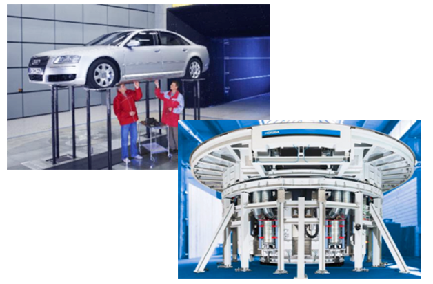 為滿足新型風洞不斷增長的要求尤其是適當?shù)姆抡婺M,HORIBA 研發(fā)出全尺寸汽車天平和道路模擬系統(tǒng),這個一體化系統(tǒng)包括:1個6-分量天平、1個5-帶可旋轉(zhuǎn)車輪道路模擬試驗機和車輛支撐系統(tǒng)。該系統(tǒng)配備可旋轉(zhuǎn)車輛升舉系統(tǒng)、相關(guān)的電氣系統(tǒng)、伺服控制器、天平相關(guān)PC和軟件、數(shù)據(jù)采系統(tǒng)和安全裝置。