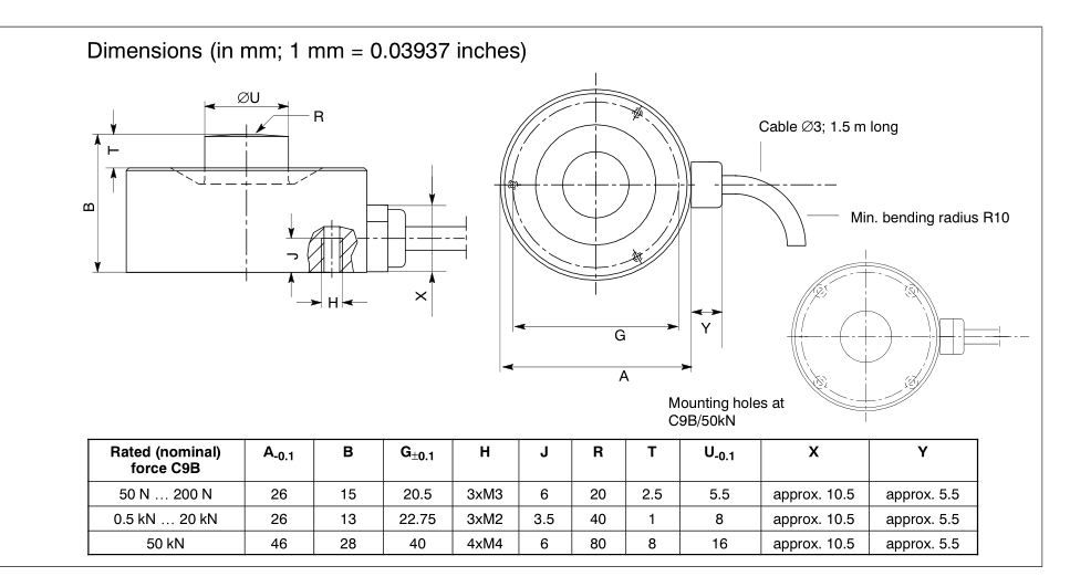 I3S廣州南創(chuàng)電子科技有限公司德國HBM力傳感器C9B/1KN尺寸圖:I3S廣州南創(chuàng)電子科技有限公司