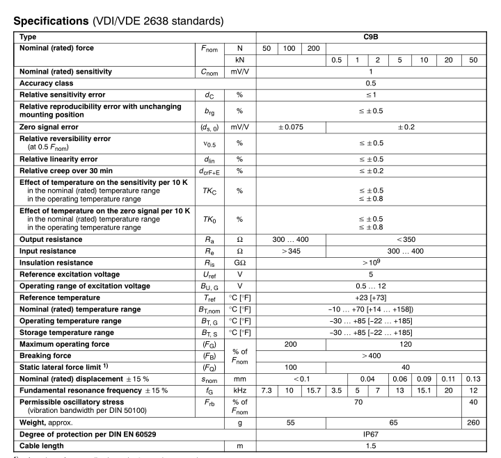 HBM C9B/50KN力傳感器型號類別技術(shù)參數(shù)選型安裝等資料信息,如果有關(guān)