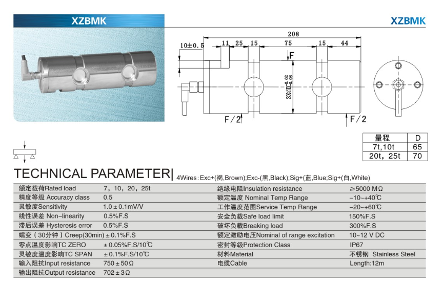 wvO廣州南創(chuàng)電子科技有限公司寧波柯力 XZBMK-7t稱重傳感器特點:wvO廣州南創(chuàng)電子科技有限公司額定載荷:7t、10t、20t、25t