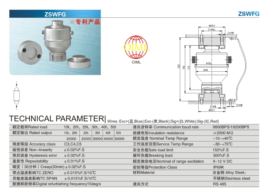 1K1廣州南創(chuàng)電子科技有限公司產(chǎn)品系列:ZSWFG型稱重傳感器