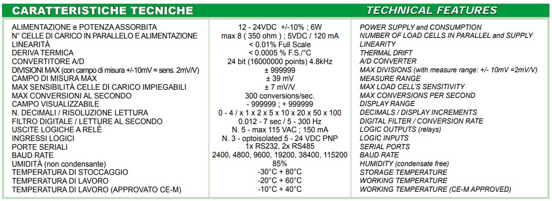 AISI 304不銹鋼重量指示器,尺寸為206 x 286 x 108毫米。IP40防護(hù)等級(D-SUB連接器)。19鍵薄膜鍵盤。46個(gè)指示燈符號。實(shí)時(shí)時(shí)鐘/日歷。