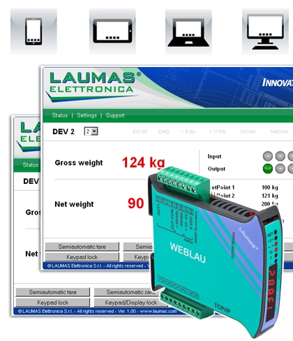 所述WEBLAU裝置是為所有安裝的有用支持/ LAUMAS的經(jīng)銷商稱重儀表,因為它可以更輕松的遠(yuǎn)程維護(hù),允許控制的地方,連接到RS485儀器包括可能的異常的狀態(tài)。