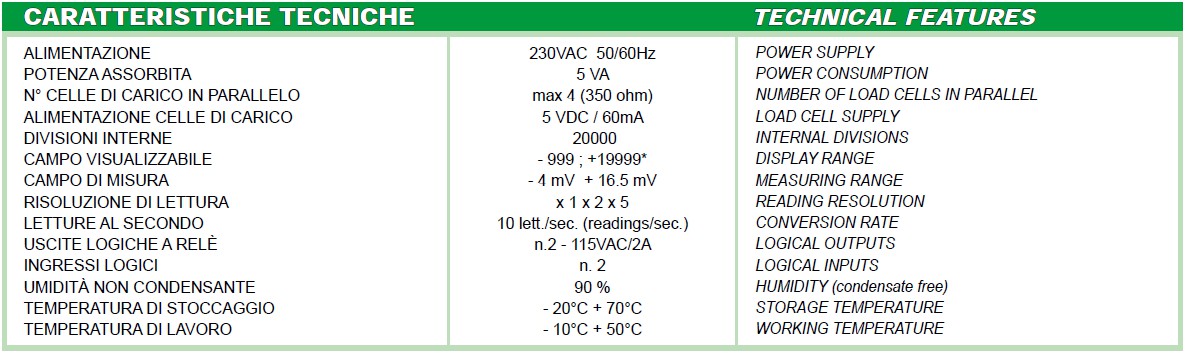 Indicatori di peso in custodia a norme DIN (96x96x65 mm, foratura 91x91mm) per montaggio a fronte quadro. Grado protezione del frontale IP64.Tastiera a 4 tasti. Punto decimale selezionabile: xxxx xxx,x xx,xx x,xxx. Display semialfanumerico a 4 cifre da 20 mm, 7 segmenti.