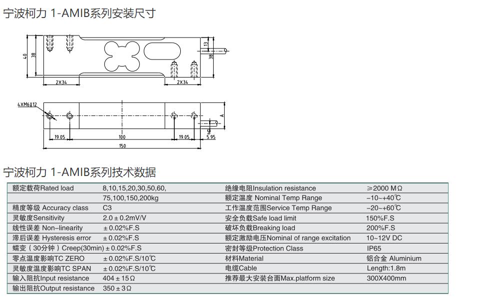 LZm廣州南創(chuàng)電子科技有限公司 LZm廣州南創(chuàng)電子科技有限公司寧波柯力稱重傳感器AMIB-60kg產(chǎn)品技術(shù)參數(shù)及尺寸圖:LZm廣州南創(chuàng)電子科技有限公司