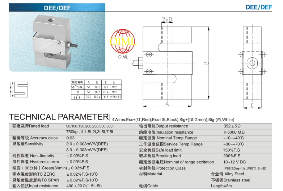 wyu廣州南創(chuàng)電子科技有限公司量程可選:DEE型稱重傳感器DEE--50kg/100kg/150kg/200kg/250kg/300kg/500kg/750kg/1t/1.2t/1.5t/2t/3t/5t