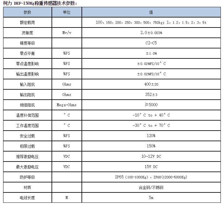 柯力 DEF-A-50kg稱重傳感器型號(hào)類別技術(shù)參數(shù)選型安裝等資料信息,如果有關(guān)