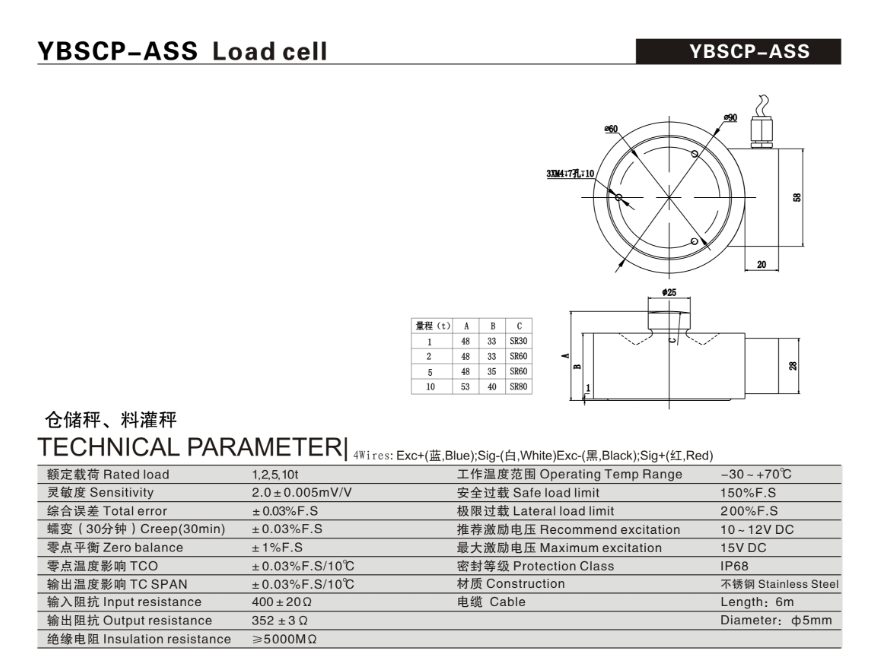 柯力 YBSCP-ASS-1t稱重傳感器型號類別技術參數(shù)選型安裝等資料信息,如果有關