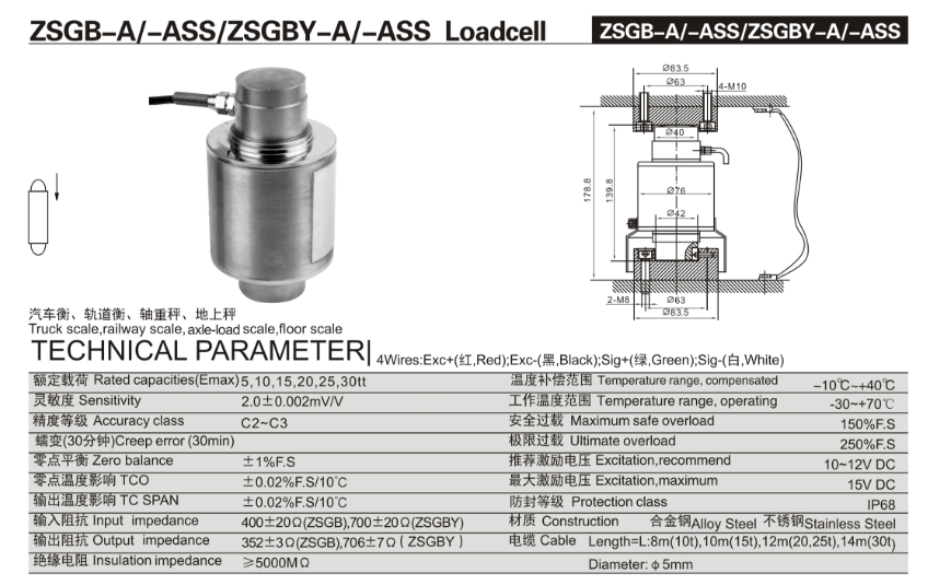 qFm廣州南創(chuàng)電子科技有限公司產(chǎn)品系列:ZSGB-ASS型稱重傳感器