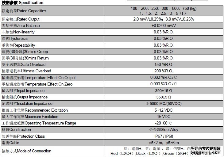額定負(fù)荷Rated Capacities100,200,250,300,500,750 (kg)