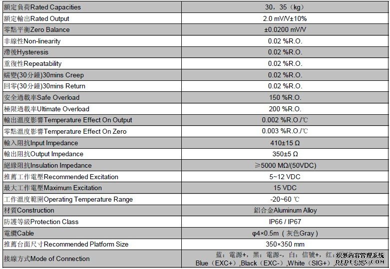 NA51-35kg零點平衡: ±0.0200 mV/V