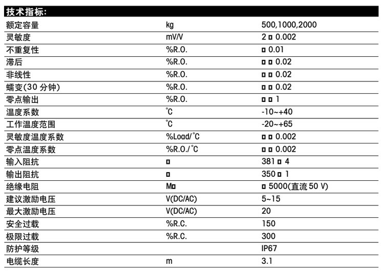 8ad廣州南創(chuàng)電子科技有限公司METTLER TOLEDO稱重傳感器SBC-2000kg技術參數(shù):8ad廣州南創(chuàng)電子科技有限公司