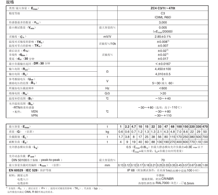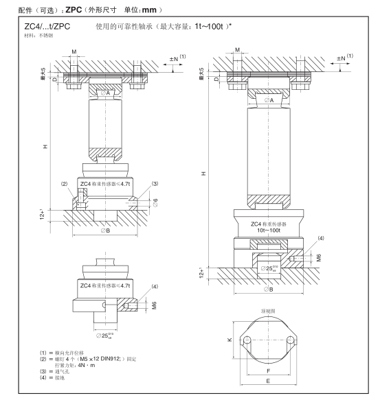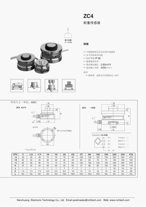 美國NCH稱重傳感器ZC4-100T尺寸圖: