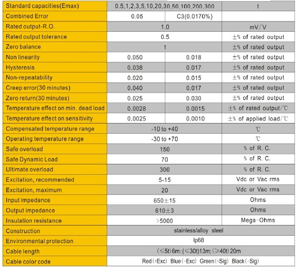 美國(guó)NCH稱重傳感器ZC3-500kg參數(shù):
