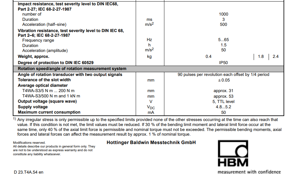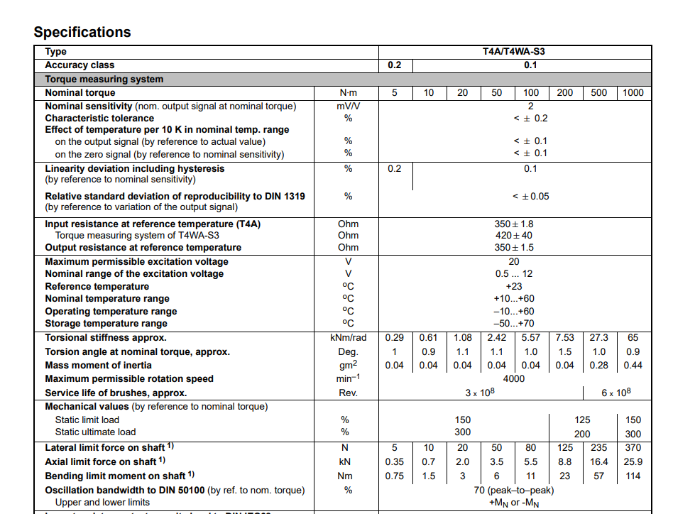 德國(guó)HBM T4A扭矩傳感器技術(shù)參數(shù):