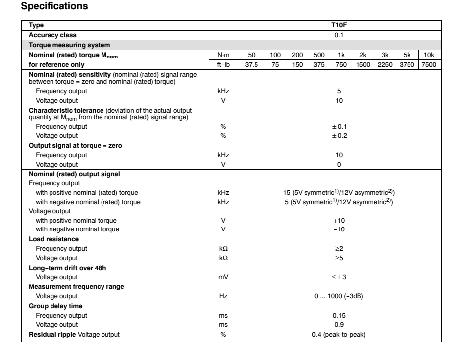 德國HBM T10FH扭矩傳感器技術(shù)參數(shù):
